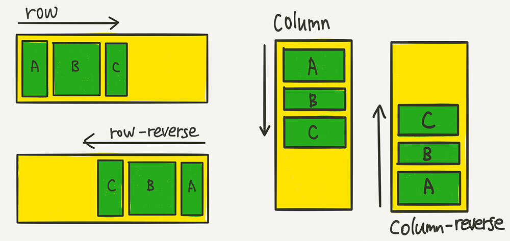 아이템들이 배치되는 축의 방향을 결정하는 속성입니다. 즉 “메인축(오뎅꼬치)의 방향을 가로로 할거냐 세로로 할거냐”를 정해주는 거예요.